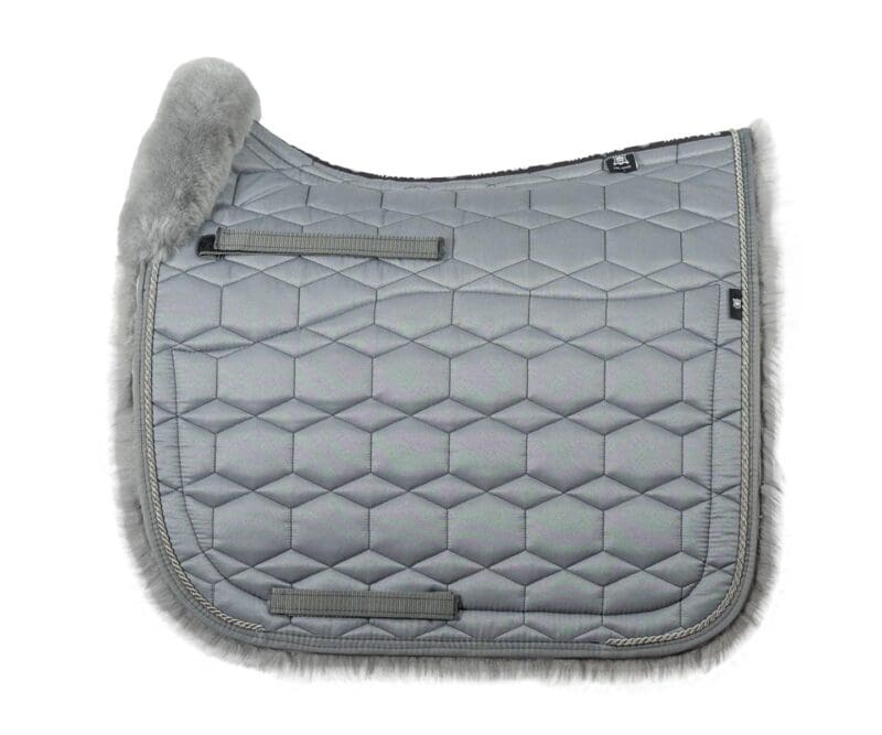 Mattes dressur underlag Grå str L med lamme i front, under og fuld lammekant rundt