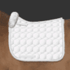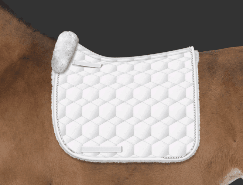 Mattes dressur underlag Hvid str L med lamme i front, under og fuld lammekant rundt med mono stropper