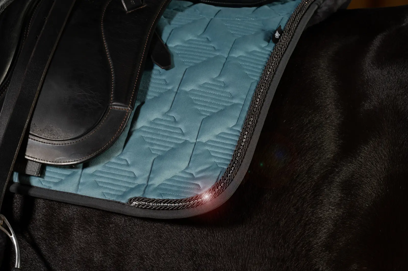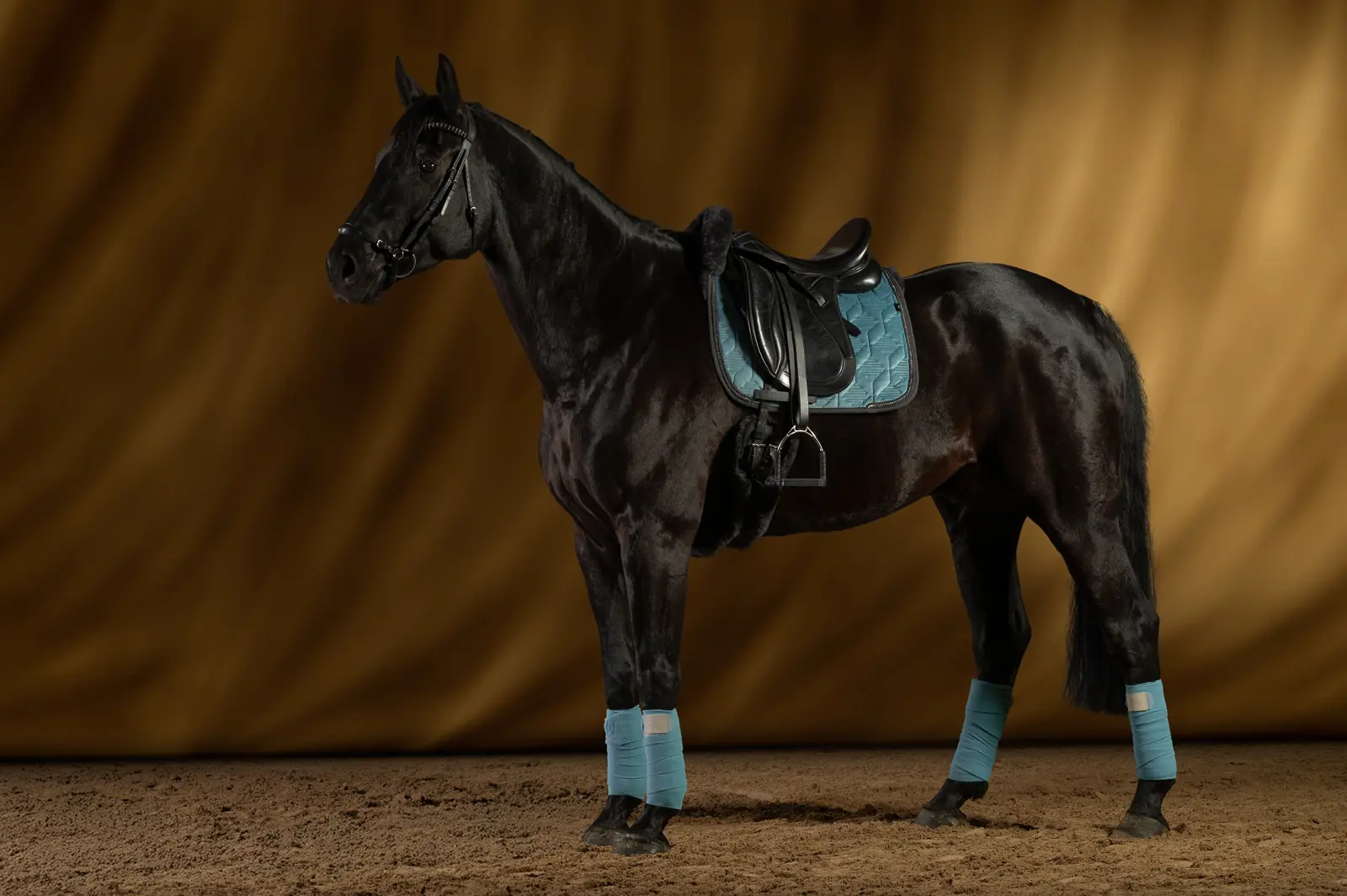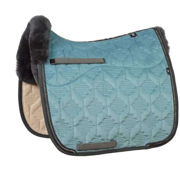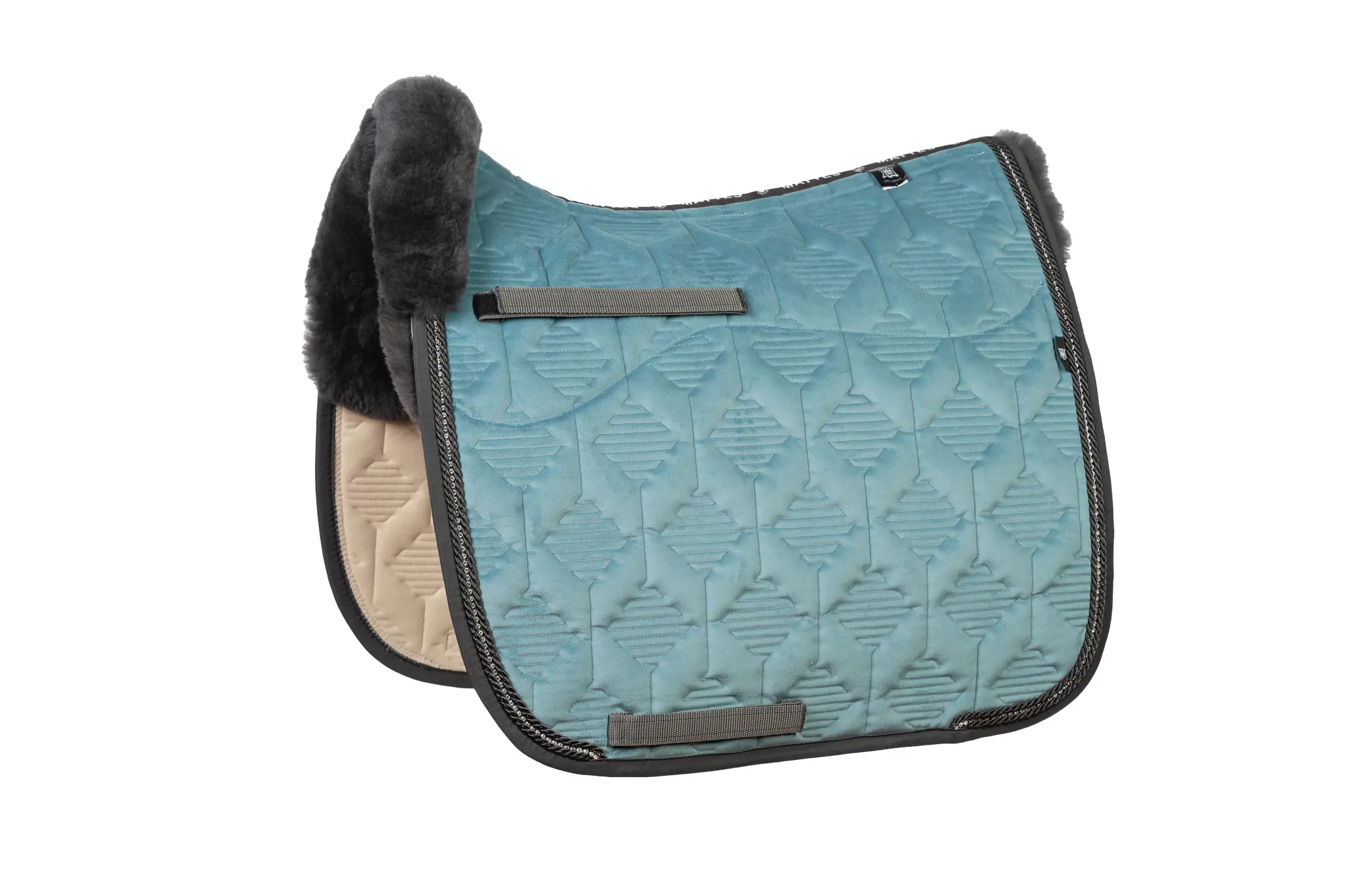 Mattes Engelsk dressur underlag Crystal Velvet Ocean str L med lam under, og i front